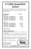 "I have to tell you......I tried your Little Somethin' Jacket last week and was more than pleased. Your pattern pieces are so precise, the jacket almost made itself! I was sewing up the sides in almost no time. Actually, the finishing (hems and such) took more time than the construction. I plan to make several more." -Teddie Hanophy |