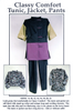 Look great, feel comfortable in Classy Comfort! The tunic and jacket are self-lined with stand up collar and unique loop and cording closures. The tunic has side slits and two flattering, easy to do, pleats on the lower back! The tunic or jacket can have long sleeves - with or without cuffs!
