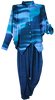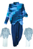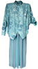 Sophisticated or casual this whimsical touch of tuxedo has dolman sleeves that taper at the wrist, a stand-up winged collar, and pointed back hemline that stylishly covers all! Buttons are sewn over snaps and front to back shoulder pleats add a final touch of drape!