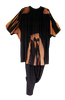 Pleats-a-plenty is softly shaped, providing a silhouette with movement! The yoke of the jacket is attached to one continuous swirl of fabric, pleated in the front and back, with a unique, comfortable drape under the arms. A cap sleeved top and pocketed pants complete the outfit!!